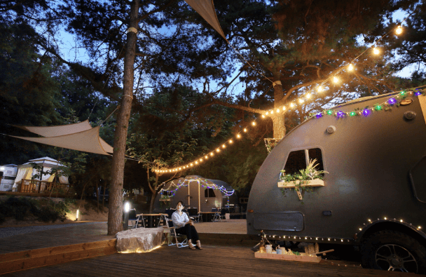 여유롭게 즐길수 있습니다. 또 숲 속 카라반이 캠핑단지로 구성되어 있습니다.